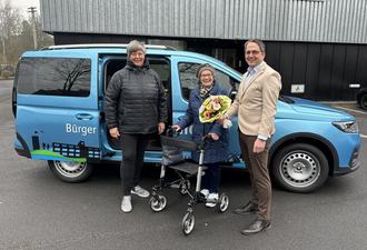 Bereits in der ersten Stunde nutzte der erste Fahrgast, Thea Böhme aus Wölferlingen, das BürgerMOBIL und wurde zu diesem besonderen Anlass mit Blumen beschenkt.