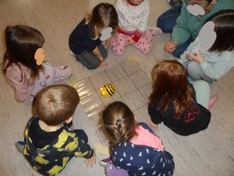 Begeistert waren die Mini-Dinos vom Einsatz des BeeBot – einer kleinen Roboter-Biene, mit der die Kinder erste Schritte ins Programmieren wagen konnten. Die Kinder lernten, wie sie den Roboter mit einfachen Befehlsketten steuern konnten. Spielerisch wurden digitale Werkzeuge in den Alltag integriert, in dem die Kinder mit einfachen Körperbefehlen sich selbst als „Roboter“ gesteuert und Aufgaben gelöst haben.