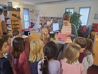 Danach hatten die Seniorflöhe die Möglichkeit, sich die Bücher anzuschauen und vorlesen zu lassen. Sie durften sich auch einige Bücher zum Ausleihen für den Kindergarten aussuchen. Die Vielfalt der Bücher hat die Kinder total begeistert.