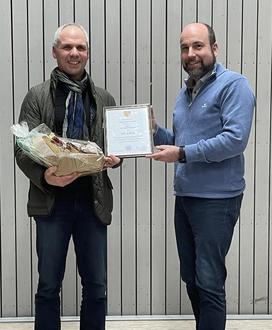 Zum Ende der Präsentation wurde Christof Dickopf durch den Gemeinderat für seine 35-jährige engagierte und pflichtbewusste Tätigkeit im Maxsainer Gemeindewald mit einer Urkunde und einem Präsentkorb geehrt. Christof Dickopf hat bereits vor Jahrzehnten erkannt, dass ein monokultureller Wald keine Zukunft hat. Und so wurden nach und nach die Forstflächen, nicht zuletzt auch mit viel Überzeugungsarbeit, in einen vielfältigen, naturnahen Wald umstrukturiert. Die letzten Jahre zeigen, wie wichtig und richtig diese Entscheidung war, denn dadurch ist unser Wald, mit all den Herausforderungen, für die Zukunft recht gut aufgestellt.