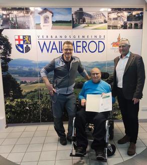 Am 01.11.1985 trat Franz-Georg Kaiser in den Dienst der Verbandsgemeindeverwaltung Wallmerod. Die Telefon- und Auskunftszentrale war von Beginn an sein Einsatzgebiet. Als gelernter Verwaltungsfachangestellter konnte er schnell die Abläufe innerhalb der Verwaltung überblicken und sich in das Aufgabengebiet einarbeiten. Im Laufe der Jahre wurde der Beruf zu seiner Berufung. Den auskunftssuchenden Menschen bestmöglich weiterzuhelfen, das war für ihn Anspruch und Ansporn. Eine Leidenschaft, die ihn auch in seinem umfangreichen ehrenamtlichen Engagement leitete. Als Personalratsvorsitzender, Behindertenbeauftragter des Westerwaldkreises, Vorsitzender des VdK Wallmerod und in unzähligen anderen Ehrenämtern stellte er sich uneigennützig in den Dienst der Hilfesuchenden. Auch den technischen Fortschritt vom Telefon mit einer Wählscheibe bis zur digitalen Telefonie mit Headset, von der einfachen Registrierkasse zur modernen Kassensoftware, hat er hautnah miterlebt und gemeistert. Immer freundlich und hilfsbereit, so haben ihn die Bürgerschaft und der Kollegenkreis kennengelernt. Deshalb war es neben dem Bürgermeister, der Büroleitung und dem Personalratsvorsitzenden auch vielen Kolleginnen und Kollegen ein Anliegen, sich persönlich von Franz-Georg Kaiser zu verabschieden und die besten Wünsche für den wohlverdienten Ruhestand zu übermitteln.