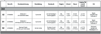 | Kursgebühr: | 52 € ab 8 TN, 72 € ab 5 TN |