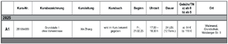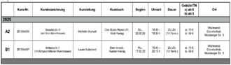 | Kursumfang: | 4 Zeitstunden, 1 Samstag, 14 bis 18 Uhr |