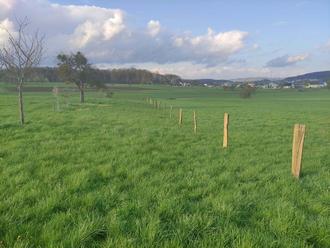 Um den Lebensraum des kleinen Bodenbrüters zu erhalten, haben Gemeinderatsmitglieder und freiwillige Helfer kürzlich rund 200 Eichenspaltpfosten an den Randbereichen bzw. in der Mitte der Wiesen und Weiden gesetzt. Die Spaltpfosten dienen einerseits als Abgrenzung, zum anderen wird neben den Pfosten jeweils ein Altgrasstreifen stehen bleiben, der im zweijährigen Turnus gemäht wird. Hier kann der kleine Zugvogel, der extensiv bewirtschaftete Wiesen und Weiden liebt, ungestört sein Nest auf den Boden bauen. Auch haben Insekten die Möglichkeit, sich in den von den Pfosten abgegrenzten Brachflächen anzusiedeln und sie als temporären Lebensraum zu nutzen. Die Spaltpfosten werden gleichzeitig vom Braunkehlchen gerne als Sitzwarten genutzt. Denn von den erhöhten Punkten aus können sie besser Ausschau nach Futter für sich und ihre Jungvögel halten. Die Vögel ernähren sich nämlich von kleinen Insekten, Würmern und Spinnen.