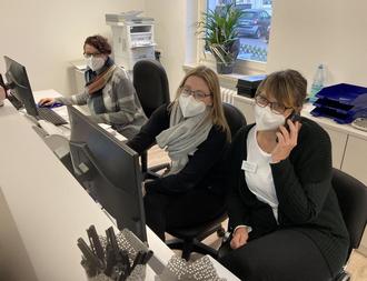 Drei Mediziner im Wechselmodell in der Praxis. Tägliche Sprechstunden und Hausbesuche.