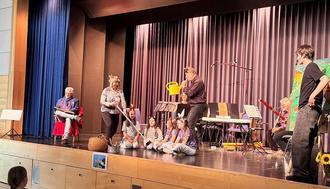 Zum Ensemble gehören 2 Sprecher, 5 Musiker und 4 Kinder. Sie wurden mit viel Applaus und Zugabe-Rufen für die tolle Darbietung belohnt.