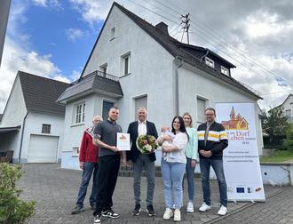 Im Jahr 2004 startete die Verbandsgemeinde Wallmerod das Förderprogramm „Leben im Dorf - Leben mittendrin“. Nach nunmehr 20 Jahren wurde in Elbingen der 500. Förderbescheid durch Bürgermeister Klaus Lütkefedder (CDU) übergeben. Mit dem Programm unterstützt die Verbandsgemeinde Hauskäufer bei der Sanierung von Gebäuden in den alten Ortskernen mit bis zu 8.000 Euro pro Objekt. „Mehr als zwei Drittel der Nutzer des Förderprogramms sind junge Familien mit Kindern“, berichtete Lütkefedder. Von daher sei das 500. Projekt geradezu ein Paradebeispiel: Junge Familie mit Kind, Zuzug in die VG Wallmerod, Übernahme und Sanierung eines Bestandsgebäudes.