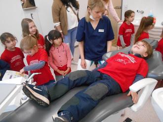 In der Woche darauf traten die „Schlauen Füchse“ zum Gegenbesuch in Hundsangen an. Die Zahnärztin zeigte den „Schlauen Füchsen“ Geräte und Instrumente in ihrem Behandlungszimmer und die Kinder folgten aufmerksam ihren Erklärungen.