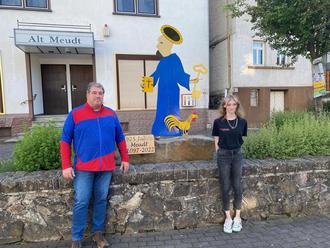 etwas verspätet konnte aus Anlass des Rückblicks auf die 900 Jahre Meudt die Petrusfigur vor dem Haus „Alt Meudt“ aufgestellt werden.