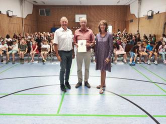 Es ist eine schöne Tradition, dass am letzten Schultag die Grundschulkinder aus dem 4. Schuljahr feierlich verabschiedet werden. So geschehen auch an der Erich-Kästner-Grundschule Hundsangen. In diesem Rahmen gesellte sich allerdings noch eine weitere Verabschiedung hinzu. Nach 27 Jahren wurde nämlich der Schulhausmeister Reinhard Endres von Bürgermeister Klaus Lütkefedder, Schulleiterin Anja Poseck und der gesamten Schulgemeinde in den wohlverdienten Ruhestand verabschiedet.