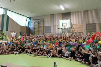 Für die meisten Schülerinnen und Schüler ist der letzte Schultag vor den Sommerferien das Ereignis des Schuljahres schlechthin. An der Adolf-Reichwein-Grundschule Meudt deutete eine bis auf den letzten Platz vollbesetzte und festlich geschmückte Schulturnhalle darauf hin, dass in diesem Jahr der Höhepunkt des Schuljahres schon 3 Tage vorverlegt war. Im Mittelpunkt des Geschehens stand die Noch-Chefin der Schule. Die hatte zu ihrer Abschiedsfeier geladen und gleich schon zu Beginn alle Hände voll zu tun, um die zahlreichen Ehrengäste und Wegbegleiter aus nah und fern persönlich zu begrüßen.
