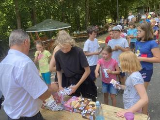Hundsangen. Zwei Wochen lang stand das Thema „Klima“ im Mittelpunkt der Ferienfreizeit der Verbandsgemeinde Wallmerod auf dem Gelände des Schützenvereins Hundsangen. Bei den hohen Temperaturen waren Abkühlungen und „viel trinken“ unerlässlich. Dazu passend der letzte Tag als es extrem heiß war und Bürgermeister Klaus Lütkefedder die 94 Jungen und Mädchen mit einem Eis überraschte.