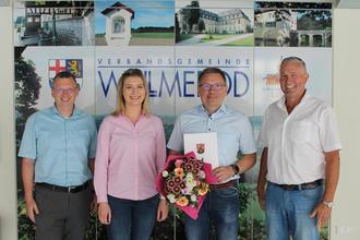 Der 1. August ist traditionell der Beginn des Ausbildungsjahres. Auch der Werkleiter der Verbandsgemeindewerke Wallmerod Heinz Becker (2. v. r.) ist an einem 1. August ins Berufsleben gestartet. Das war allerdings schon 1985. Deshalb konnte er am 01.08.2025 sein 40-jähriges Dienstjubiläum feiern. Im Rahmen einer Feierstunde überreichte Bürgermeister Klaus Lütkefedder (rechts) die Dankurkunde des Ministerpräsidenten und bedankte sich sehr herzlich für das überaus engagierte Wirken in den zurückliegenden Jahrzehnten. Die Glückwünsche der Kolleginnen und Kollegen überbrachten Büroleiter Thomas Wolf (links) und die stellvertretende Vorsitzende des Personalrates Louisa Mielich (2. v. l.).