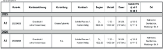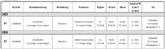 | Im Herbst verkürzter Kursumfang:10,67 UE, 8 Abend/e | |