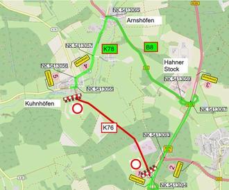 Der Landesbetrieb Mobilität Diez (LBM Diez) teilt mit, dass ab 16.09.2024 die Arbeiten zur Sanierung der Kreisstraße 76 zwischen Kuhnhöfen und der B 8 bzw. B 255 anlaufen.