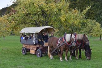 Am Sonntag den 14.9. lädt die Will und Liselott Masgeik-Stiftung alle Interessierten zu einer Planwagenfahrt in die Streuobstgemeinde Molsberg ein. Los geht es um 11.00 Uhr in der Straße "Weiherborn" unterhalb des Hofgutes Molsberg. Auf der etwa zweistündigen Rundfahrt gezogen von drei Pferdestärken wollen wir die artenreichen Streuobstwiesen rund um Molsberg vom Kutschbock aus erleben und einiges während der Fahrt dazu erfahren. Genießen und Erleben Sie mit uns die frühherbstlichen Eindrücke der Streuobstwiesen, das Treiben der Vögel und Insekten sowie die Sortenvielfalt der Obstbäume. Kommentiert wird die Rundfahrt vom Naturschutzreferenten der Stiftung Dipl.-Biol. Philipp Schiefenhövel. Da die Teilnehmerzahl auf dem Planwagen von Birgit Hanne vom Hannehof begrenzt ist, ist eine verbindliche Anmeldung per Mail an ps@masgeik-stiftung.de oder telefonisch unter 06435-1368 dringend erforderlich. Der Teilnahmebeitrag beträgt 15 € pro Person und ist bei Antritt der Fahrt bar zu entrichten. Da der Planwagen an den Seiten offen ist sollte angepasste Kleidung getragen werden.
