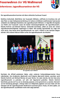 Nachdem die offiziell geladenen Gäste, unter anderem Verbandsbürgermeister Klaus Lütkefedder, ihre Grußworte überbracht und Präsente überreicht hatten, sprachen auch Natalie Hertrich und Michael Dünnes ein paar Worte. Sie seien damals, bei der Idee eine Jugendfeuerwehr zu gründen, auf sehr viel Gegenwind gestoßen. Natalie Hertrich berichtete, gerade als Frau sei es schwierig gewesen, ernst genommen zu werden. Dennoch sei die Gründung gelungen, anfangs habe es 6 Mitglieder gegeben und man habe sich bei Übungen mit der Jugendfeuerwehr Wallmerod zusammen getan. Heute, 25 Jahre später, sei die Jugendfeuerwehr aus Bilkheim nicht mehr wegzudenken.