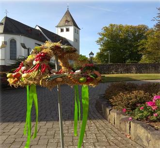 Um 10.30 Uhr ist ein feierlicher Dankgottesdienst für die Erntegaben mit Segnung der Erntekränze in der Kirche St. Adelphus in Salz.