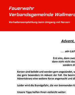 Leider wird die Brandgefahr, die von brennenden Kerzen ausgeht, oft unterschätzt!