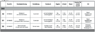 | Kursumfang: | 10 Zeitstunden, 10 Vormittag/e |