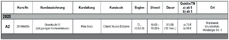| Kursumfang: | 4 Zeitstunden, 1 Samstag, 14 bis 18 Uhr |