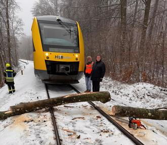 Am Sonntag, den 05.01.2025 um 12:50 Uhr wurden die Feuerwehren aus Westerburg, Sainscheid, Wengenroth, Gershasen, die Führungsstaffel und die Wehrleitung der VG Westerburg zu einer Zugkollision mit Baum auf der Bahnstrecke Westerburg in Richtung Langenhahn alarmiert. Vor Ort stellten die Einsatzkräfte fest, dass ein Personenzug gegen einen umgestürzten Baum gefahren ist. Glücklicherweise wurden weder die drei Zuginsassen noch der Zugführer verletzt. Der Baum wurde durch die Feuerwehr entfernt und der leicht beschädigte Zug konnte die Fahrt zum nächsten Bahnhof mitsamt den Insassen fortführen.