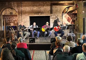 Die Besetzung von Good Company ließ im Vorfeld erahnen, dass es sich lohnen würde, den Donnerstagabend in der gut geheizten Alten Schmiede im Stöffel zu verbringen. Was geboten wurde, waren zwei Stunden gut austarierter Akustik-Folk mit frischem Touch, in einer sehr professionellen Art und Weise präsentiert. Ulli Altrichter sorgte mit einem gechillten Bass und dem Mischpult an der Seite für einen reibungslosen Ablauf. Mit den zwei starken Stimmen von Udo Lietz und Larry Blattermann ist Abwechslung gegeben, und es fällt auf, wie gut beide Stimmen trotz der Unterschiedlichkeit zusammenwirken. Zu hören waren Stücke wie „Gentle on my mind“ von John Hartford oder Bob Dylans „If I were a carpenter“ sowie irische Folk Songs. Mit der „Rose of Alabama“ ging es dann weit zurück in die 1860er-Jahre.