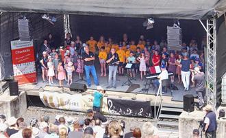 50 Chöre, 1500 Sänger, insgesamt rund 3000 Besucher, hat der Chorverband Westerwald im Stöffel-Park in Enspel zusammengebracht. Locker, fröhlich, unterhaltsam und höchst musikalisch ging es ab 13.30 Uhr bis in die frühen Abendstunden zu. Dazu kam blauer Himmel, strahlende Sonne und hohe Temperaturen. Auf vier Bühnen wurde gesungen, jede Formation hatte 20 Minuten zur Verfügung, dann folgte schon der nächste Chor. Die Zuhörer, darunter selbstverständlich auch Sangesbrüder und -schwestern, konnten sich dazwischen frei bewegen. Klein und Groß boten ein buntes Programm. Für die Verpflegung sorgten die drei Vereine aus Hirtscheid, Stockum-Püschen und Fehl-Ritzhausen. Später folgten noch offene Singen unter der Leitung von Tristan Meister. Und die neue Verbandshymne erklang: „Es schallt so schön im schönen Westerwald“ von Oliver Gies. Es sollte ein Chor- und Familienfest sein, hatte sich der Vorstand des Chorverbandes auf die Fahnen geschrieben, allen voran Alfred Labonte (Vorsitzender), Raimund Schäfer (Schatzmeister und Pressereferent) und Mario Siry (Verbandschorleiter). Und das haben sie in schönster Weise erreicht. Auch ein attraktives Kinderprogramm war nicht vergessen worden. Martin Rudolph (Geschäftsführer des Stöffel-Parks) war begeistert von dem schönen Tag. Und die ganze Organisation war hervorragend gelungen. Immer wieder war zu hören: „Ein wunderbares Fest!“ (Text und Foto: Tatjana Steindorf)
