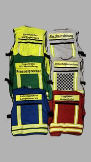 Die sogenannten Funktionskennzeichnungswesten sind auf den Fahrzeugen der Feuerwehren in der Verbandsgemeinde Westerburg verlastet. Sie kennzeichnen im Einsatzfall die Fahrzeugführer der einzelnen Einsatzfahrzeuge, sowie besondere Funktionen. Welche Bedeutung die einzelnen Farben haben regeln die Bundesländer selbst. Somit kann ihre Bedeutung von Bundesland zu Bundesland verschieden sein.