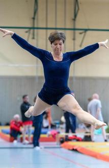 Jutta Schmale turnte an allen vier Geräten jeweils die Leistungsklasse 3. Mit 11,50 Punkten am Sprungtisch, 10,70 Punkten am Stufenbarren, 11,75 Punkten an der Turnbank (statt Schwebebalken) und 12,80 Punkten auf der 12x12 Bodenfläche wurde sie in der Gesamtwertung mit 46,750 Punkten 10. Wir gratulieren ganz herzlich zu ihren sehr guten Platzierung.