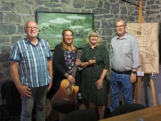 Bodenständig, echt, wertschätzend, lebenslustig: So wie Jutta Faßhauer-Jung auftritt, so wirken auch ihre Kunst(hand)werke. Gerade zeigt die Stockum-Püschenerin im Nachbardorf, in Enspel, einige Exemplare ihres Schaffens unter dem Titel „Nichtsdestotrotz“. Mit ansprechenden Worten eröffnete dort Markus Hof (Vorsitzender des Zweckverbands Stöffel-Park und Bürgermeister der VG Westerburg) die Ausstellung im Café Kohleschuppen.