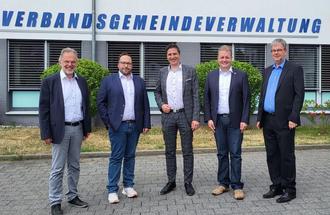 Ärzte und Bürgermeister vereinen ihre Kräfte in Westerburg und planen ein zukunftsorientiertes Gesundheitszentrum für die Region Wäller-Land: Andreas Heidrich (Bürgermeister VG Bad Marienberg), Dr. Dennis Ferdinand, Janick Pape (Stadtbürgermeister von Westerburg), Gerrit Müller (Bürgermeister VG Rennerod) und Markus Hof (Bürgermeister VG Westerburg).