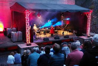 Kein Regen und bestens besetzte Ränge, Stöffelpark-Geschäftsführer Martin Rudolph freute sich bei der Eröffnung des „Umsonst und draußen“-Konzerts über die perfekten äußeren Bedingungen und den selbstlosen Einsatz der Bands, die auch dieses Mal wieder auf eine Gage verzichten und das vor Ort eingesammelte Geld spenden. Zum fünften Mal traten „Somesongs“ auf der Basaltbühne auf, zum vierten Mal mit „Walk the Line“ zusammen. „Aus der Idee, mit einer zweiten Band das musikalische Spektrum für die Zuschauer zu erweitern ist inzwischen eine richtige Bandfreundschaft geworden“ erzählte Somesongs-Gitarrist Günter Weigel. “Wir machen vor dem Auftritt immer eine kleine Bandfeier und stimmen die Songs ab, die wir am Ende des Konzerts zusammen spielen wollen“. So auch dieses Mal, wobei es einige Premieren gab.