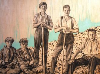 Das Bild von Carmen Benner stellt die Basaltbearbeitung und ihre Menschen in den Fokus.
