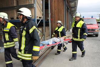 Im Übungsverlauf wurden insgesamt acht Statisten als verletzte Personen durch zwölf Atemschutzgeräteträger der Feuerwehren aus dem Gebäude gerettet.
