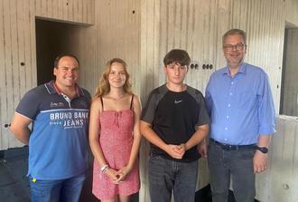v.l.n.r.: Tim Distelrath, Luna Julie Steiner und Donik Topallaj (Schülervertretung Realschule plus) sowie Bürgermeister Markus Hof