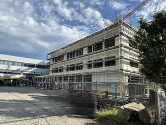 Seit langem können die rund 560 Schülerinnen und Schüler den Baufortschritt des Anbaus an der Realschule plus beobachten und strecken neugierig die Köpfe aus den Fenstern um zu sehen, wo sie bald ebenfalls unterrichtet werden können. Am 29.08.2024 war es soweit, der Rohbau des Anbaus an der Realschule plus Westerburg wurde offiziell fertig gestellt. Die Verbandsgemeinde Westerburg und der Bürgermeister Herr Hof luden zum Richtfest. Bei der rustikalen Feierlichkeit im Anbau waren die Verbandsgemeinde einschließlich politischer Vertreter, der Bürgermeister und die Schulleiter und Schulleiterinnen der umgebenden Schulen zugegen. Darüber hinaus waren auch die Vertretungen der maßgeblich am Bau beteiligten Handwerksbetriebe, etliche Handwerker und viele aus der Schulgemeinschaft, wie die Schülervertretung, der örtliche Personalrat und natürlich das Schulleitungsteam der RSplus Westerburg eingeladen. Nach einer kurzen Rede gab es die Möglichkeit die Baustelle zu besichtigen. Voller Spannung wartet nun die Schulgemeinschaft auf die Fertigstellung des Innenausbaus und die neuen räumlichen und gleichzeitig neu entstehenden pädagogischen Möglichkeiten. Da sich der Bau an den neuesten entwicklungspädagogischen Konzepten orientiert, macht sich die gesamte Schule bereits jetzt auf den Weg den Unterricht umzugestalten und die Schülerinnen und Schüler in einen neuen Fokus des Lernens, Arbeitens und Lebens in der Schule zu setzen. Die Ganztagsschule erhält einen neuen lichtdurchfluteten freundlichen Raum zum Mittagessen sowie Lernen und Spielen, ein zusätzlicher naturwissenschaftlicher Raum ermöglicht mehr Klassen gleichzeitig das Arbeiten in einem Fachraum, insgesamt zehn Klassenräume in bewusst offen gehaltenen Einheiten bieten Platz für jahrgangsstufenübergreifende Projekte und Lernformen des offenen Unterrichts. Dazu gibt es noch einen neuen Mehrzweckraum, einen neuen Schulkiosk und auch das Sekretariat sowie die Schulleitungsbüros werden besser erreichbar im Gebäude positioniert. Ebenfalls ist es für die gesamt Schulgemeinschaft erfreulich, dass die seit vielen Jahren bestehende Containersituation endlich aufgelöst werden kann. Anschließend an die Fertigstellung des Anbaus, welche für den Herbst 2025 vorgesehen ist, sind noch weitere Umbaumaßnahmen im und am Schulgebäude geplant, von der alle an Schule Beteiligten in den nächsten Jahren stark profitieren werden! Die Gesamtkosten des Anbaus inklusive der Anbindung an das Bestandsgebäude werden sich auf rund 6,9 Millionen Euro belaufen. Die Schulgemeinschaft freut sich bereits heute auf die Einweihungsfeierlichkeiten zur Fertigstellung und auf ein Lernen und Arbeiten auf einem neuen Niveau.