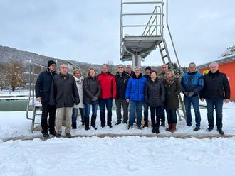 Bei Schnee im Schwimmbad: Die CDU-Fraktion des Verbandsgemeinderates war zum Glück bei eisigen Temperaturen nicht zum Baden ins Westerwaldbad gekommen. Vielmehr ging es darum, sich über den Zustand des Schwimmbades und anstehende Renovierungsarbeiten zu informieren. Dabei war der Pächter des Bades, Herr Gravelius, mit mehreren Mitarbeitern anwesend und erläuterte zunächst die Probleme, die beim Betrieb des Schwimmbades in der Saison 2023 wegen der veralteten Chlorgranulat-Anlage entstanden sind. Die Mitarbeiter des Bades zeigten dabei in 2023 ein überdurchschnittliches Engagement, damit der Badebetrieb weiterlaufen konnte. Den Beteiligten, nämlich dem Betreiber des Bades und der Verwaltung der Verbandsgemeinde, wurde aber auch klar, dass die Chlorgranulat-Anlage inzwischen so in die Jahre gekommen ist, dass sie durch eine moderne Chlorgasanlage ersetzt werden muss. Der Austausch dieser Anlage wurde denn auch so im Haushalt der VG für 2024 eingestellt und soll über die Wintermonate umgesetzt werden. Außerdem konnten sich die Fraktionsmitglieder im „Maschinenraum“ des Schwimmbades davon überzeugen, dass sich die Anlage im Übrigen auf einem sehr guten und modernen technischen Stand befindet. Der neue Gasbrenner musste beispielsweise bisher gar nicht zum Einsatz kommen, da die Beheizung über die eingerichtete Solarthermie-Anlage völlig ausreichend ist. Die Becken, die zum Schutz vor Frost in den Wintermonaten zunächst mit Wasser gefüllt bleiben, und die technische Anlage werden ständig gewartet und überwacht. Ein Sprung ins kalte Nass bei den derzeitigen eisigen Temperaturen war also nicht notwendig, denn das Westerwaldbad wird in diesem Jahr rechtzeitig zu Saisonbeginn wieder am Start sein und als Attraktion des Westerburger Landes seine Türen öffnen: Die nächste Badesaison kann kommen…!