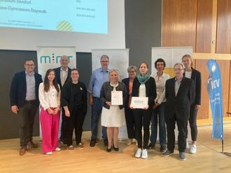 Die Schulleiterin Susanne Kersten und Katalin Eichmann nahmen zusammen mit Bürgermeister Hof den Preis entgegen.