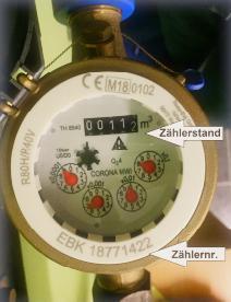 Auf dem Wasserzähler wird der Zählerstand immer als ganze Zahl angegeben (siehe Foto).