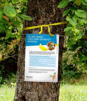 Seit einigen Jahren ruft das Bundesministerium für Ernährung und Landwirtschaft im Rahmen von „Zu gut für die Tonne“ dazu auf, Bäume, die kostenlos und ohne Rücksprache mit dem Eigentümer für den Eigenbedarf geerntet werden können, mit einem gelben Band zu markieren.