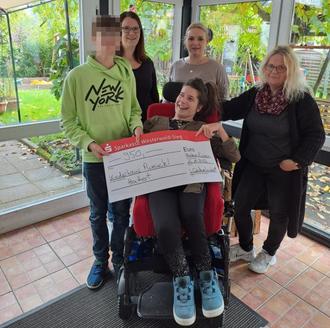 Oktober 2022. Nun konnten wir endlich und mit voller Freude unseren Spendenscheck über 950 € an das Kinderhaus Pumuckl in Hattert übergeben. Einige Bewohner und Betreuer waren im Urlaub, umso mehr freute sich Bewohnerin Svenja, dass sie den Scheck zusammen mit ihren Betreuerinnen entgegennehmen konnte. „Davon können wir viele schöne Dinge zusammen mit unseren Bewohnern in den Ferien unternehmen.“, freuten sich alle Anwesenden.