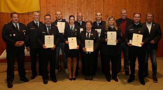 15 Jahre aktiv und mit dem Bronzenen Feuerwehrehrenzeichen ausgezeichnet wurden: Dennis Hoffmann (Girkenroth), Katharina Wagner (Halbs), Carolin Flügel (Härtlingen), Niklas Schäfer (Höhn-Neuhochstein), Franziska Schulze (Pottum), Lukas Hoffmann (Rothenbach), Markus Normann, Thomas Zimmermann (beide Stahlhofen a. Wiesensee), Jens Breuel (Willmenrod), Lisa Kölgen und Robin Groth (beide Westerburg).