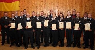 25 Jahre aktiv und mit dem Silbernen Feuerwehrehrenzeichen ausgezeichnet wurden: Iris Schmidt (Berzhahn), Maria Bautz, Julian Kaiser, Shona Knipprath, Maximilian Lamboy, Felicitas Lamboy, Christof Lamboy, Theresia Lamboy-Kleinmann, Daniel Menges (alle Brandscheid), Ramon Jung, Christian Kossowski, Daniel Pritz, Jens Wengenroth und Carsten Wolf (alle Gemünden), Christian Brötz (Girkenroth), Axel Müller (Halbs), Christian Becher (Höhn-Schönberg), Raphael Aßmann (Kaden), Patrick Ditthardt (Kölbingen), Christoph Wenzel (Langenhahn), Jennifer Haas (Stockum-Püschen), Marc Dillbahner und Markus Rohr (beide Westerburg).