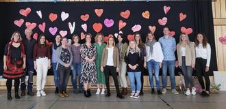 Wie sehr ihnen die neue Schulleiterin am Herzen liegt, das machten die Mitwirkenden durch Lieder, Musik und gute Wünsche deutlich. Durch das bunte Programm führten hierbei Miriam Becker (Lehrkraft) und Lilli Schmidt (Schülersprecherin). Darüber hinaus hatten sich die Schülerinnen und Schüler etwas Besonderes überlegt und in der ganzen Schule rote Herzen mit guten Wünschen für Monika Wagner verteilt. Dass dieser Tag der neuen Schulleiterin lange in Erinnerung bleiben wird, dazu trugen auch die Geschenke der Kinder bei. Sie überreichten ein tolles Bild mit ihren Fingerabdrücken. Hilfreich in ihrem zukünftigen Amt wird sicher auch das eigens angefertigte Buch sein, das den Titel „Was macht/darf eine Schulleitung“ trägt. Hierzu hatten die Kinder sich Gedanken gemacht. Zu den Antworten zählen unter anderem: „Wichtige Entscheidungen treffen, viel Computer spielen und Probealarm, wann immer Frau Wagner will“, was die neue Schulchefin beim Vortragen schmunzeln ließ.