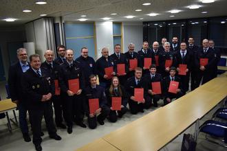 Einundzwanzig Feuerwehrfrauen und -männer konnte Verbandsbürgermeister Markus Hof am 23. November 2023 in der Verwaltung willkommen heißen. Zusammen mit Wehrleiter Peter Baumann dankte Hof den Anwesenden für die Bereitschaft, noch mehr Verantwortung in den verschiedenen Aufgaben ihrer Ortswehren zu übernehmen. Gleichzeitig machte der deutlich, dass es nicht selbstverständlich sei und er seinen Hut vor der Leistung aller Feuerwehrleute ziehen würde. Nach der kurzen Ansprache wurden nach Maßgabe des Landesgesetzes über den Brandschutz, die allgemeine Hilfe und des Katastrophenschutzes (LBKG) vom 02. November 1981 folgende Wehrleute ernannt: