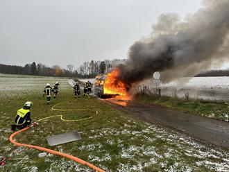 Zu einem brennenden Wohnmobil mussten am Samstag, den 03.12.2022 gegen 9:15 Uhr die Feuerwehren aus Rothenbach, Obersayn, Langenhahn, Hintermühlen und das Tanklöschfahrzeug der Feuerwehr Höhn ausrücken. Bei Eintreffen fanden die Wehrleute ein Wohnmobil vor, welches bereits in voller Ausdehnung brannte. Der Fahrer hatte das Gefährt auf einem Feldweg am Rande der B-255 zwischen Rothenbach und Obersayn abgestellt.