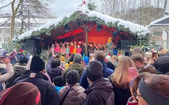 „Unter dem bewährten Motto ‚Von den Bürgern, für die Bürger‘ wurde an den vier Festtagen wieder ein abwechslungsreiches Bühnenprogramm geboten. In der großen, weihnachtlich geschmückten Krippe traten Kindergärten, Schulen, Musikvereinen, Bands sowie andere Gruppen und Akteure ins Rampenlicht. Ihre Tänze, Lieder, Live-Musik und sonstige Darbietungen wurden vom Publikum mit reichlich Beifall honoriert. Neben den Glühwein- und Imbissständen gab es auch Anbieter, die Bücher, Adventsgestecke und ausgefallene Dekorationen und Weihnachtsgeschenke zum Verkauf anboten. Eine gute Auswahl an Kuchen und Gebäck der Golden Girls gab es im warmen Ratssaal. Am Samstagnachmittag brachten ein Glücksrad mit tollen Gewinnen und Kinderschminken die Augen des Nachwuchses zum Leuchten. Ein kostenloses Angebot, das den Sponsoren (Eulenspiegel, Verschönerungsverein Westerburg, Gewerbeverein Westerburger Land, Sparkasse Westerwald-Sieg, Nassauische Sparkasse, Westerwald Bank, Koch Spielwaren Vedes, Bäckerei Garcia und Buchhandlung Logo) zu verdanken ist. Schon am Eröffnungsabend trafen sich viele Familien und Freunde, um sich gemeinsam auf die Adventszeit einzustimmen. Auch die Mitarbeiter der Verwaltungen und ansässiger Unternehmen und Einrichtungen nutzten die Gelegenheit, sich in gemütlicher Atmosphäre zu einem Feierabendglühwein oder -punsch zusammenzufinden. (Text und Foto: Ulrike Preis)