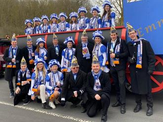 Prinz Elias vom Geißbockheim und Prinzessin Leni zu Spatzebursch mit ihrer Hofdame Leana aus der Wiesestroß werden mit viel Helau und Kamelle die närrischen Gäste begrüßen.