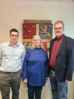 Bürgermeister Markus Hof und Abteilungsleiter Martin Ortseifen begrüßen Renate Gläßer als kompetente Sicherheitsberaterin für Senioren/Seniorinnen in der Verbandsgemeinde Westerburg. Das Konzept hierfür wurde von der Leitstelle Kriminalprävention im Innenministerium gemeinsam mit der Polizei und den Kommunen entwickelt und soll in erster Linie dem Bevölkerungsschutz dienen.